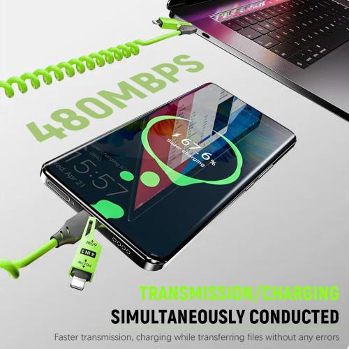 شحن سريع وفعّال لأجهزتك.سرعة نقل بيانات تصل إلى 480 ميغابت/ثانية لمزامنة الملفات بسرعة.🌀 تصميم نابض (سلك حلزوني) :