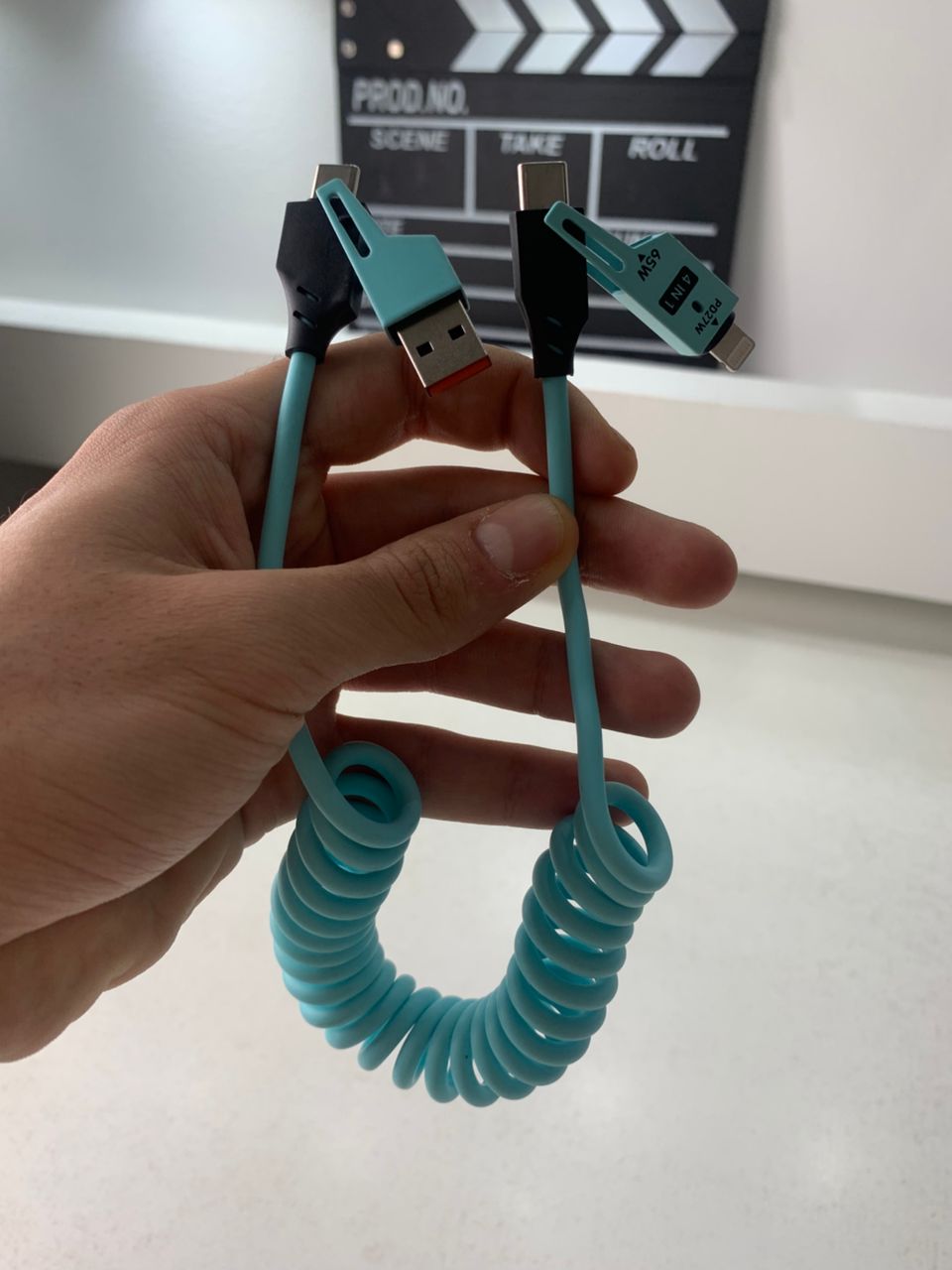 الكابل بتصميم زنبركي/حلزوني يتمدد عند الحاجة ويوفر سهولة التخزين بدون تشابك. عملي ويوفر مساحة سواء في المكتب أو السيارة أو حقيبة السفر.
